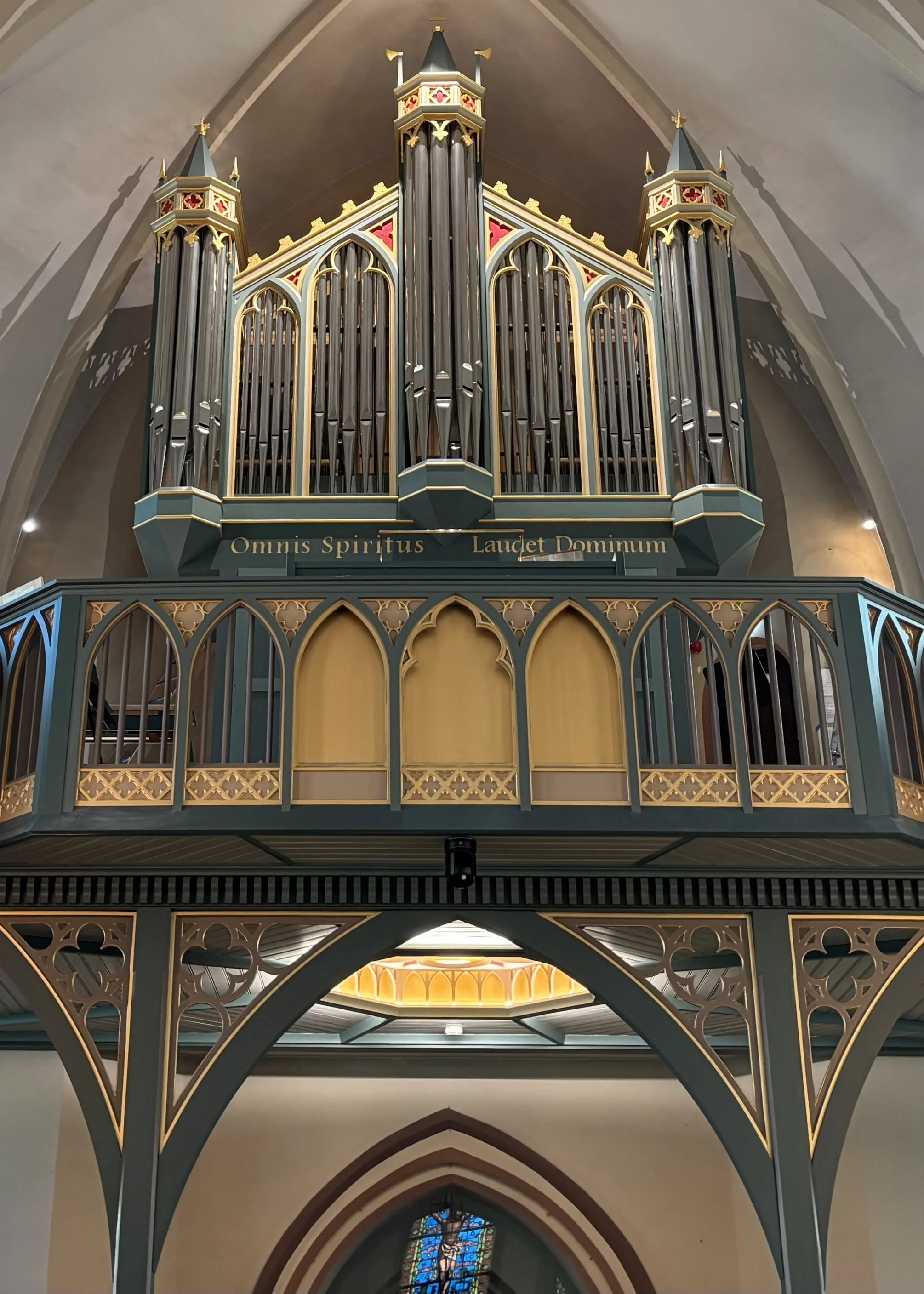 Galleri og orgelfasade er tegnet av arkitekt Tor-Magnus Horten i samarbeid med bl.a. orgelbyggeriet.